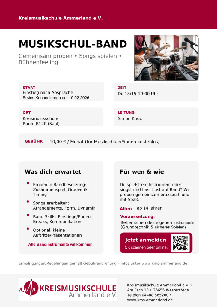Wir wünschen Ihnen viel Spaß beim Stöbern und stehen Ihnen für Wünsche und Anregungen jederzeit als kompetenter Ansprechpartner für den Bereich Musik im Landkreis Ammerland zur Verfügung.